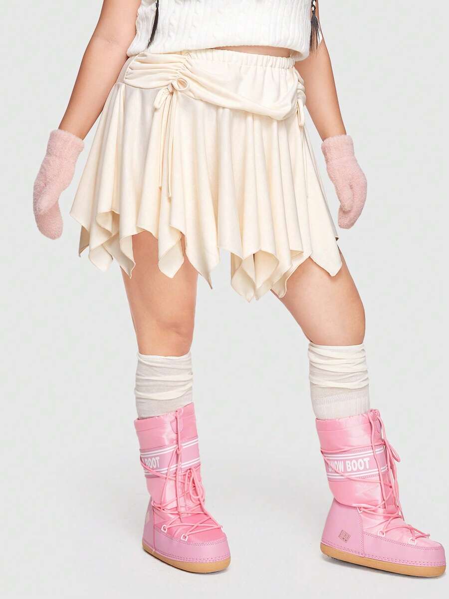 Kawaii Plus Drawstring Front Asymmetrical Hem Skirt