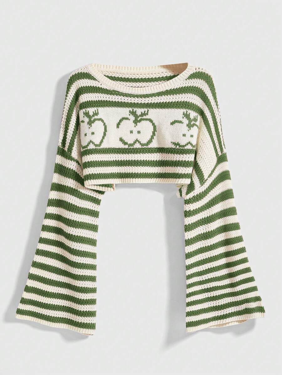 Kawaii Plus Size Cute Apple Pattern Cropped Loose Knit Sweater