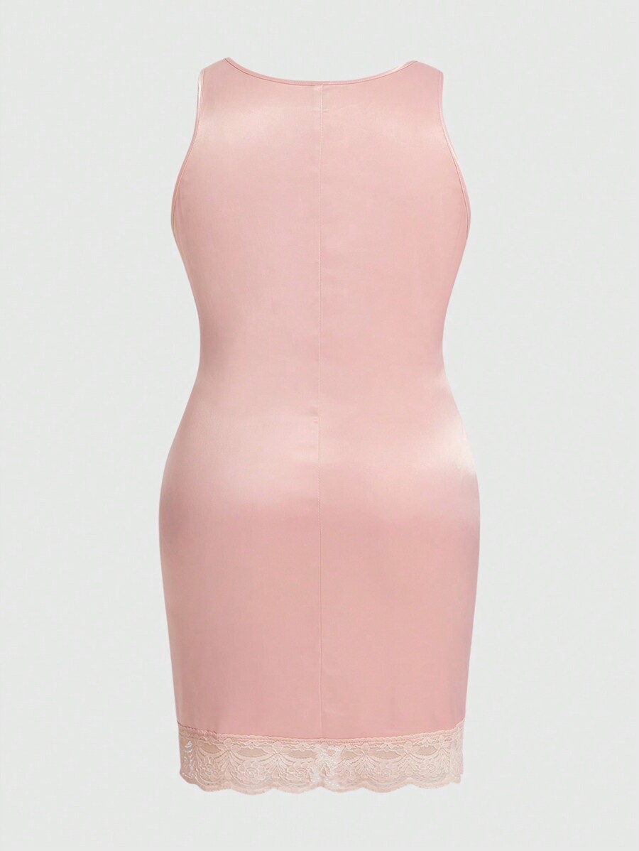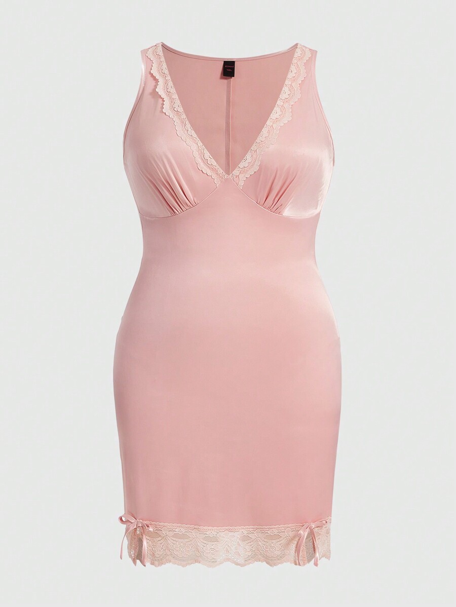 Kawaii Plus Size Cute Pure & Simple Low V-Neck Lace Patchwork Satin Dress