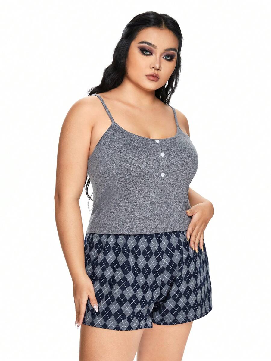 Kawaii Plus Size Gray System AVANT Plaid Cami Pajama Set
