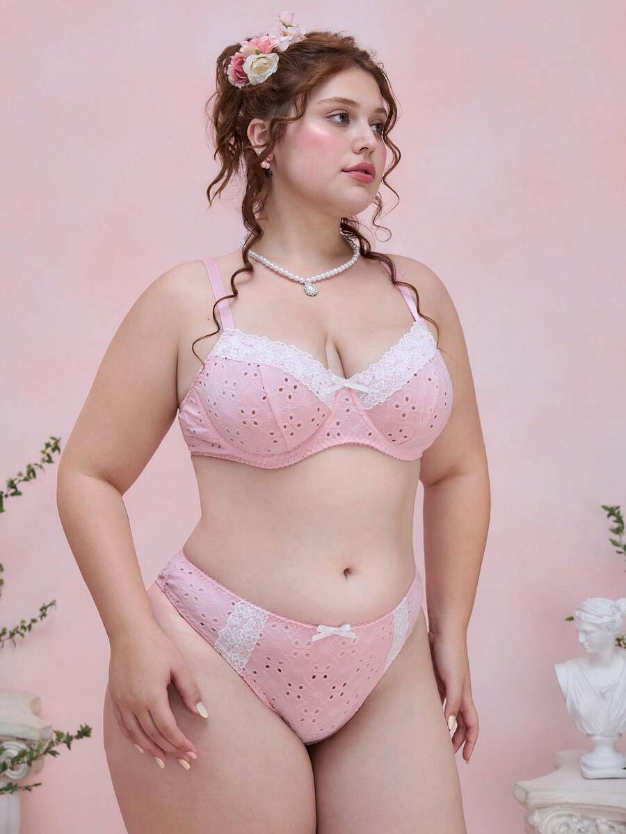 Plus Size Sweet Purity Palace Style Handmade Knitted Hollow-Out Lace Patchwork Lingerie Bralette Lingerie Bra Set, Kawaii