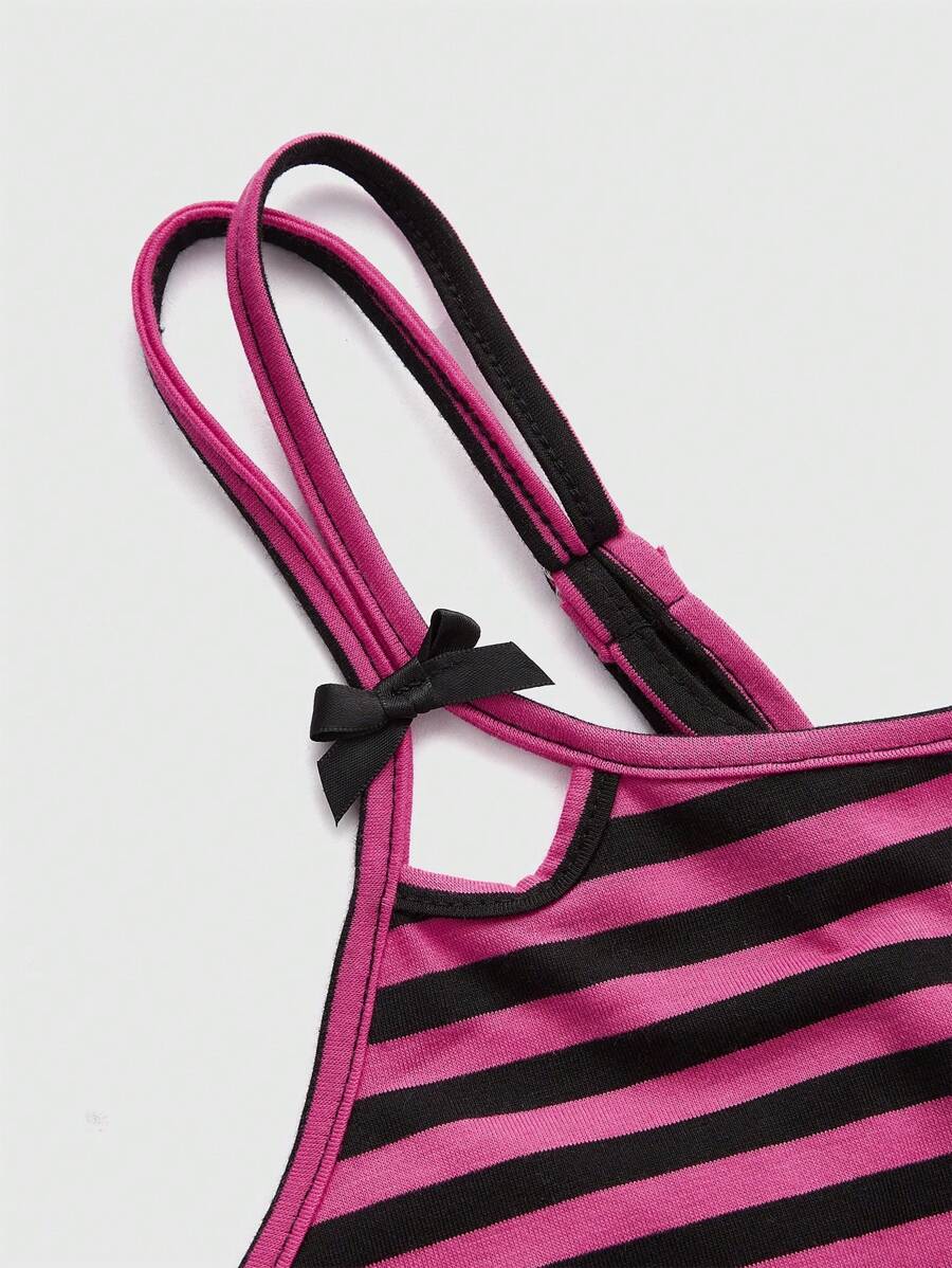 Plus Size Women's Black & Pink Striped Skull Embroidery Tank Top, Kawaii Style, School