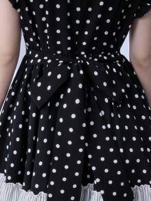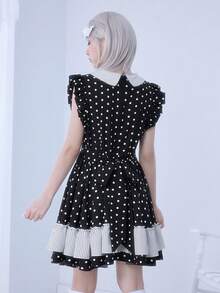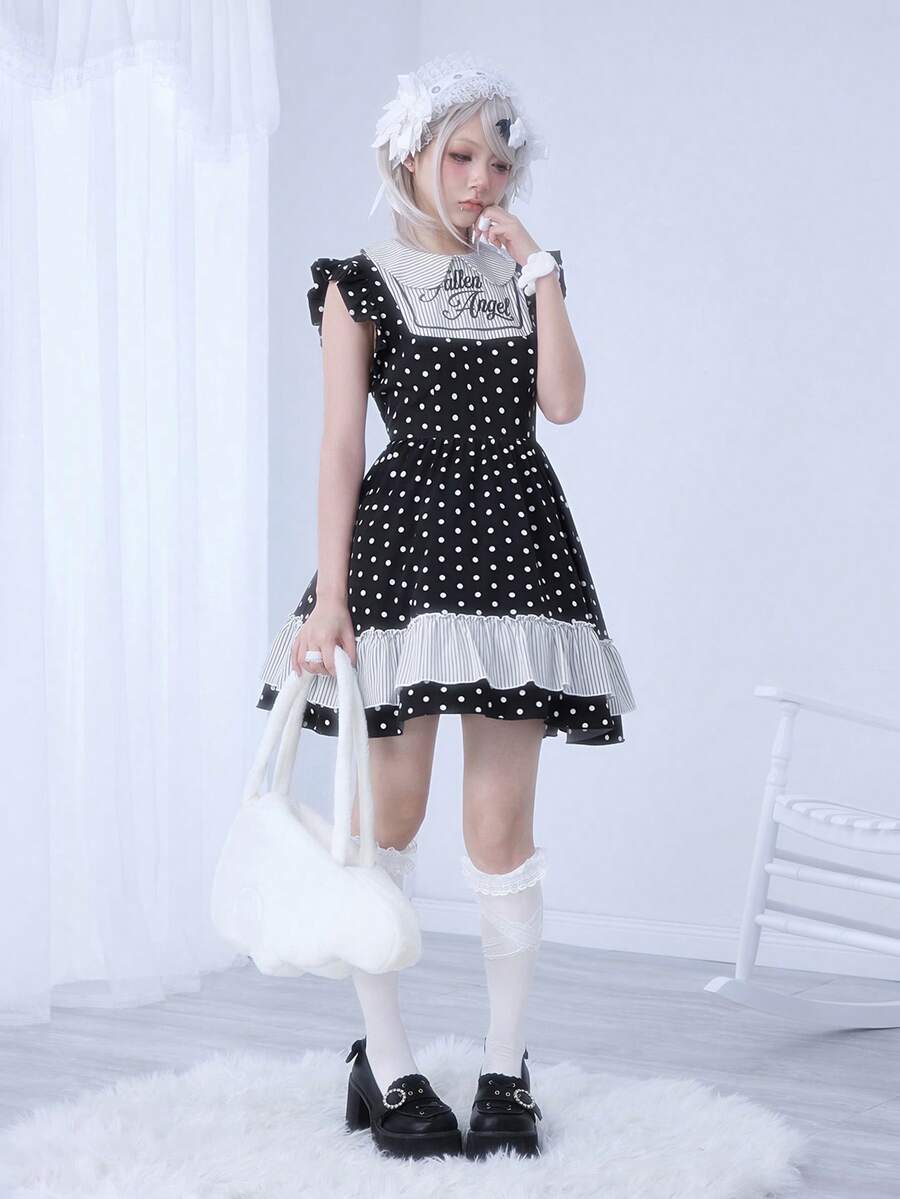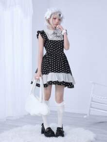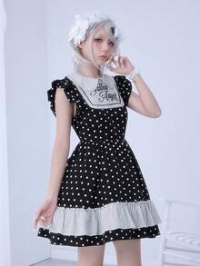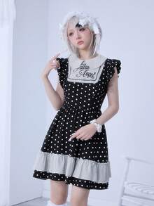 Kawaii Polka Dot Y2K Babe Letter Embroidery Peter Pan Collar Women Dress