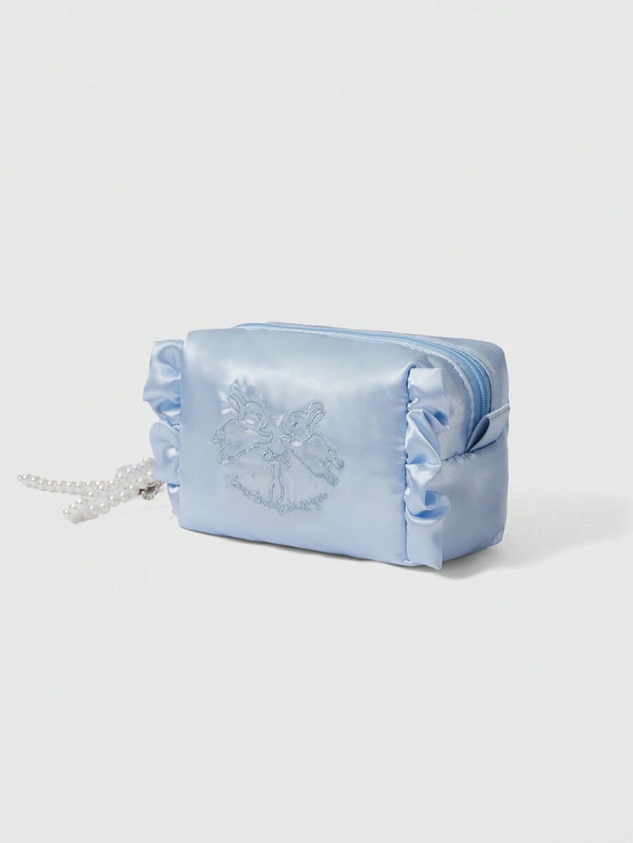 Kawaii Rabbit Bow Pencil Case, Simple Style Large Capacity Storage Bag, 3-In-1 Makeup Bag/Toiletry Bag/Commuter Bag For Travel