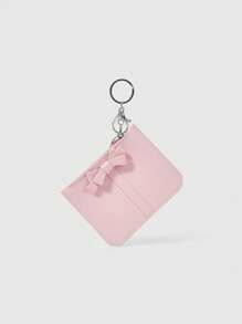 Kawaii Retro Elegant French Pink 3D Bow Keychain Wallet Card Holder Coin Pouch, Y2K Sweet Bag Charm Accessory, Photo ID Bus Card Transparent Sleeve, Suitable For Travel, Vacation, Social, Shopping