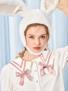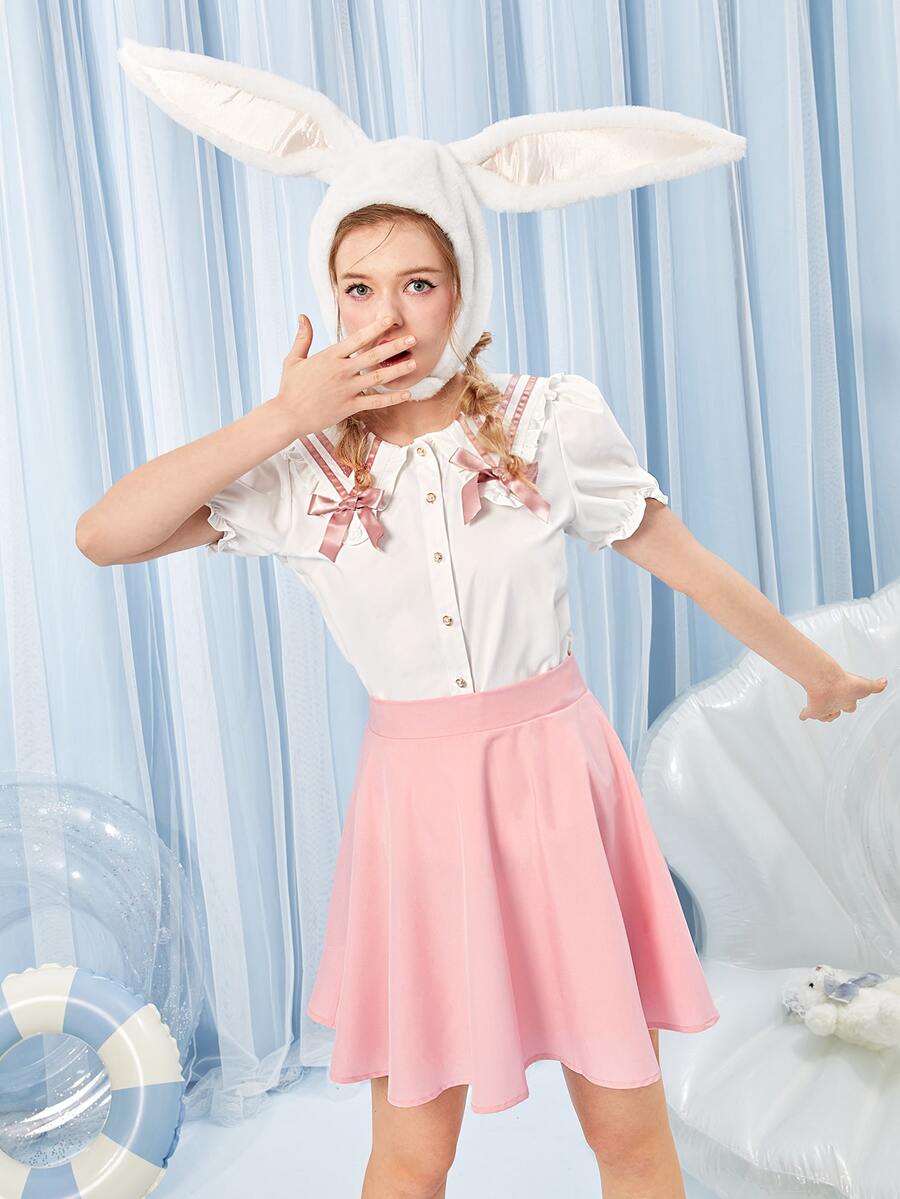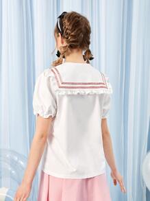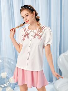 Kawaii Sailor Collar Bow Front Puff Sleeve Shirt