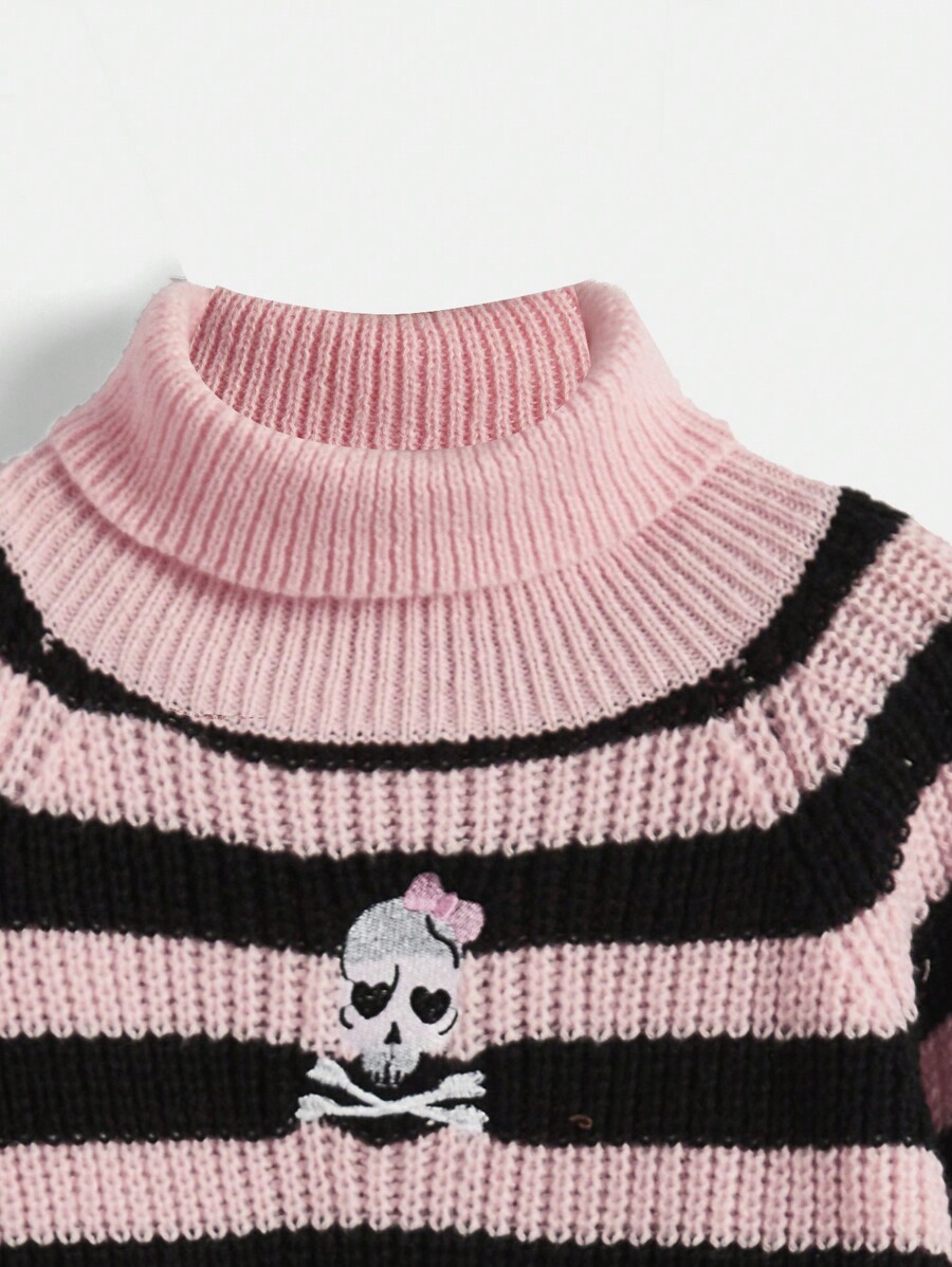 Kawaii Skull Embroidery Striped Pattern Sweater