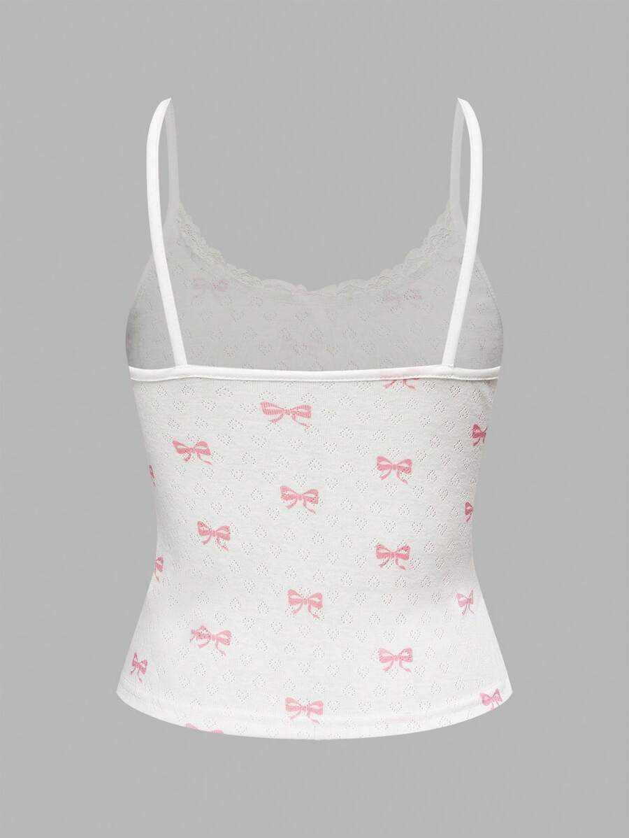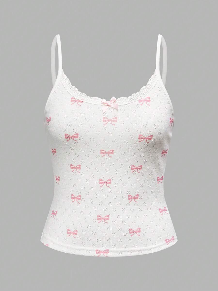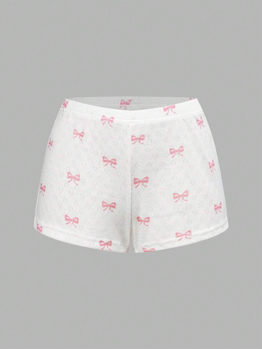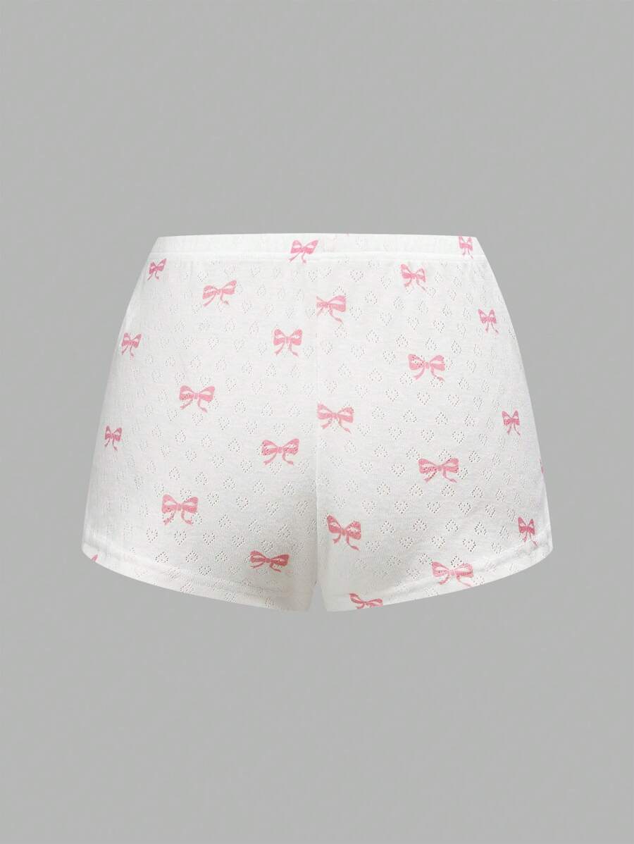 Kawaii Summer Comfy Knit Hollow-Out Butterfly Print Casual Tank Top & Shorts Pajama Set For Women