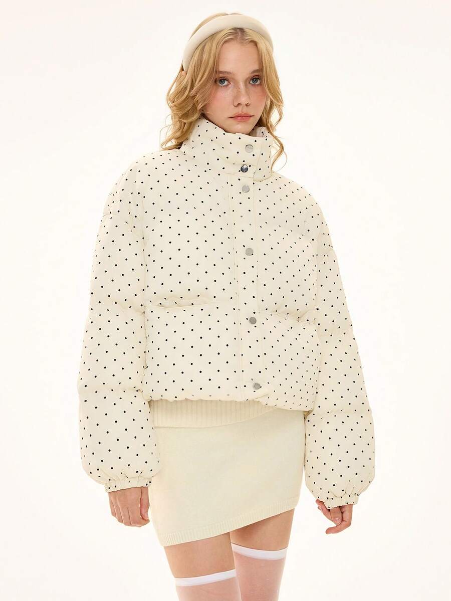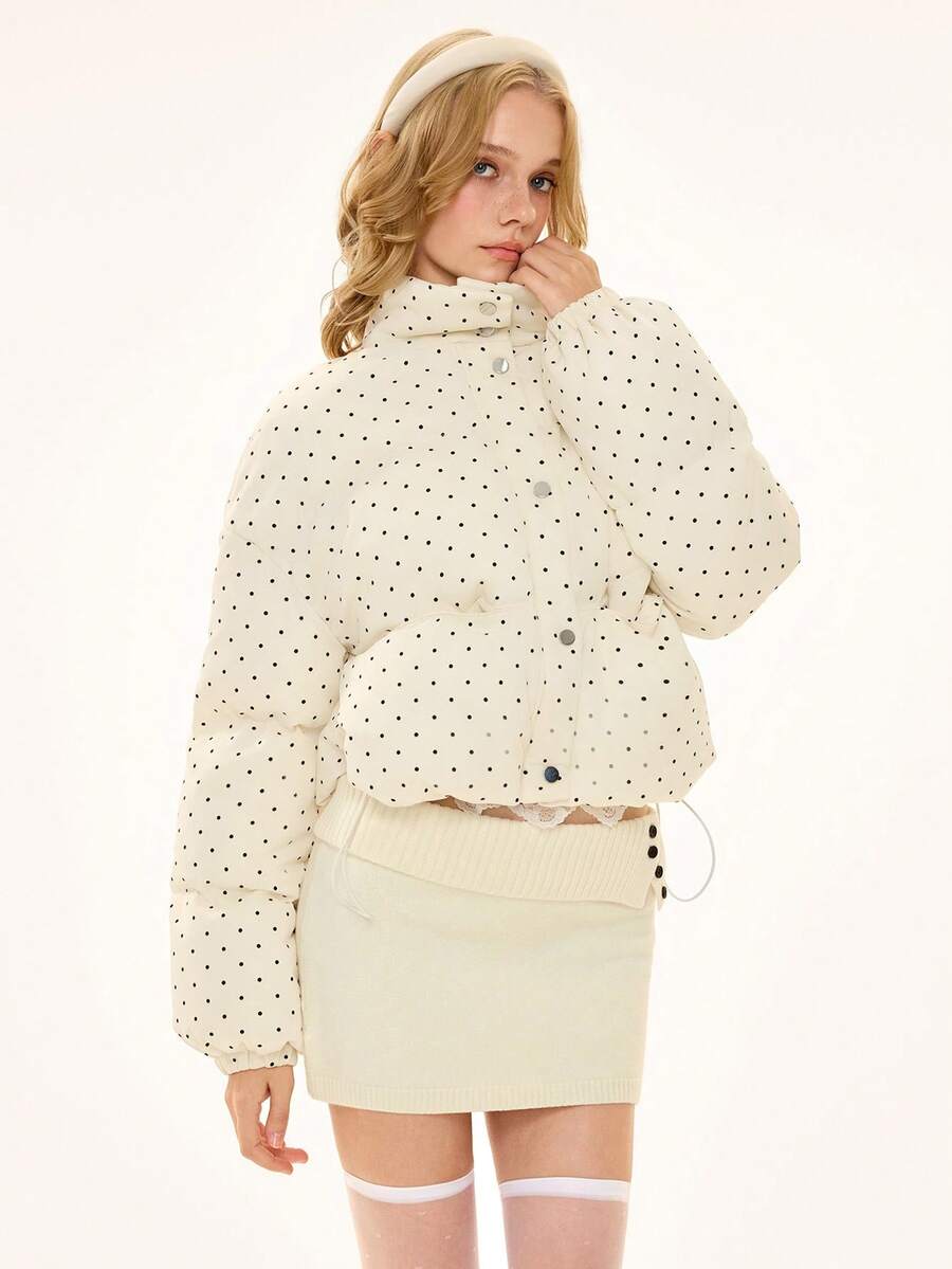 Kawaii Sweet Polka Dot Mandarin Collar Padded Coat