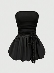 Kawaii Sweet Vintage Puffer With Bowknot, Ballet Style Strapless Bud Dress For Women