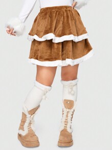 Kawaii Two Layer Hem Flannel Skirt