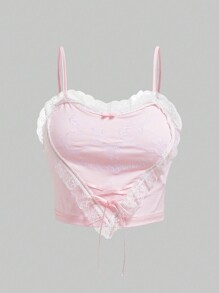 Kawaii Valentine's Day Cute Abstract Heart & Rabbit Embroidery Camisole