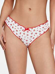 Kawaii Valentine's Day Cute Contrast Color Trim Bow Kisses & Cherry Full Print Seamless Panties