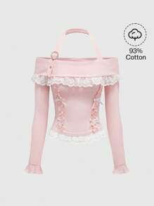 Kawaii Valentines Day Bow Decor Halter Cute Sweet Women Himekaji T-Shirt, Spring