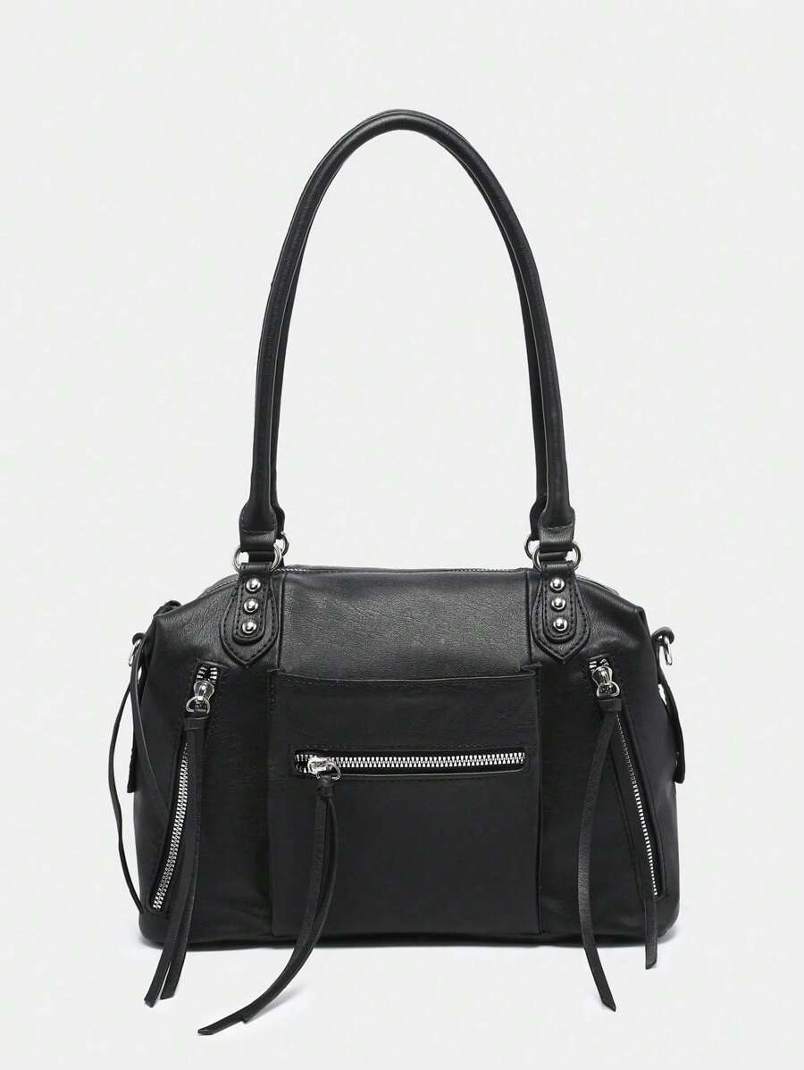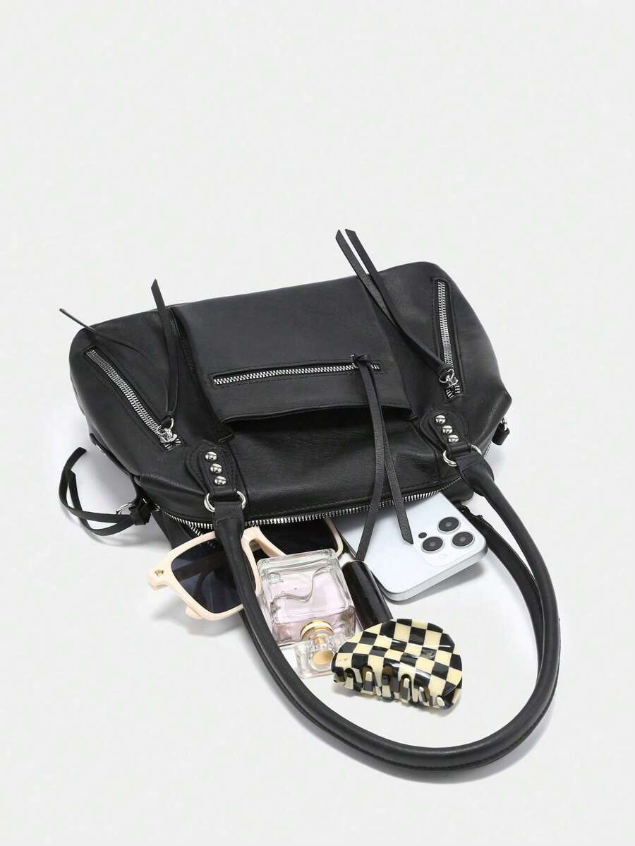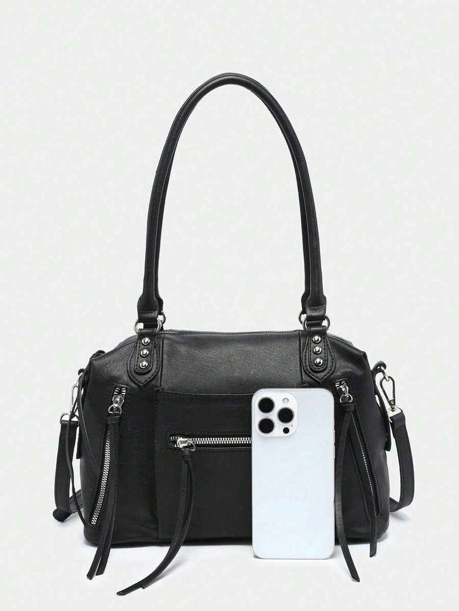 Kawaii Vintage Distressed Ombre Cross & Heart Pendant Decor Women's Bow Tied Tote Bag, Large Capacity Shoulder Bag With Multiple Pockets