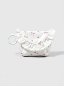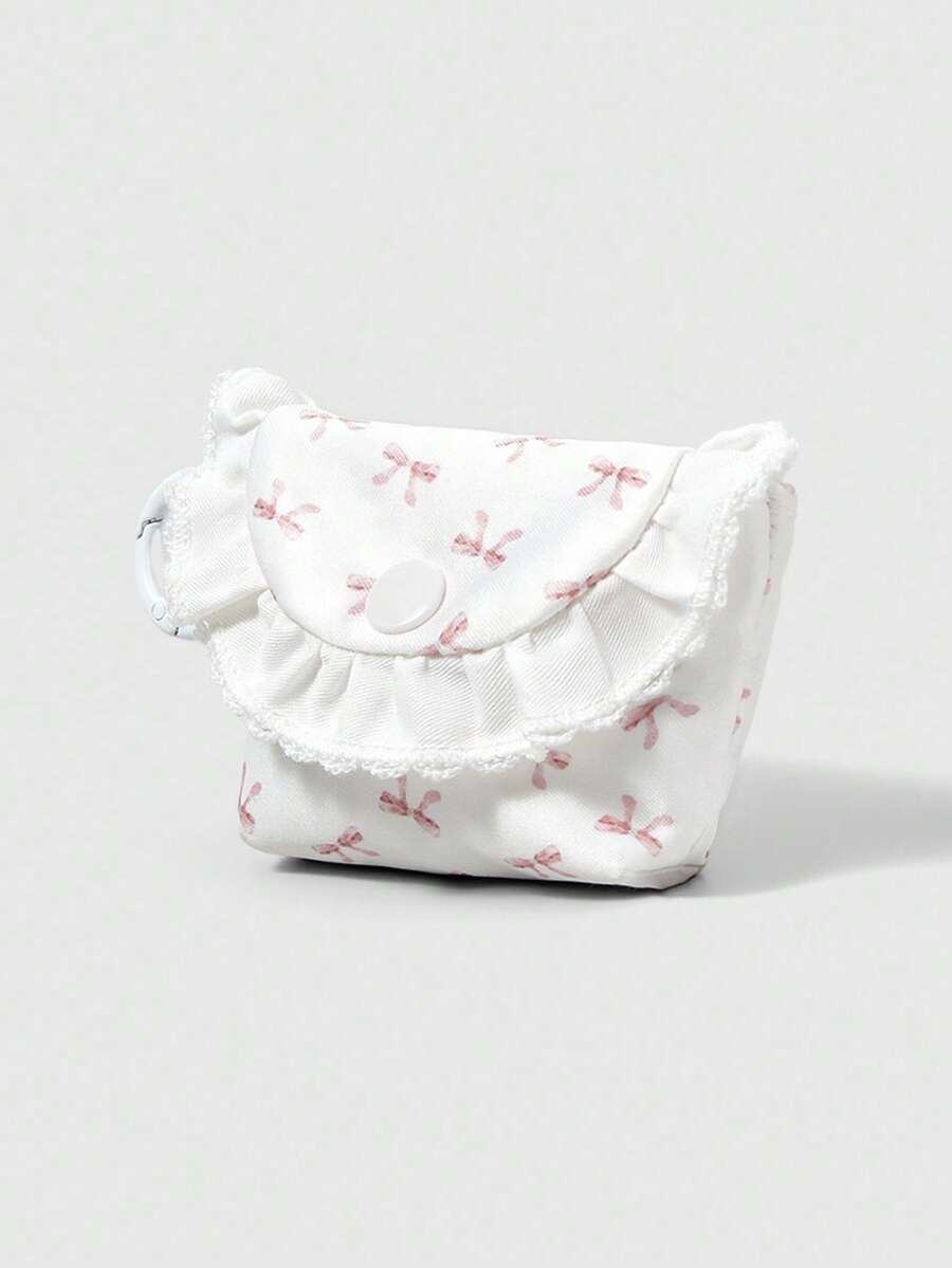 Kawaii White Lace, Pearl & Bow Pattern Portable Mini Coin Purse, Earbud Case