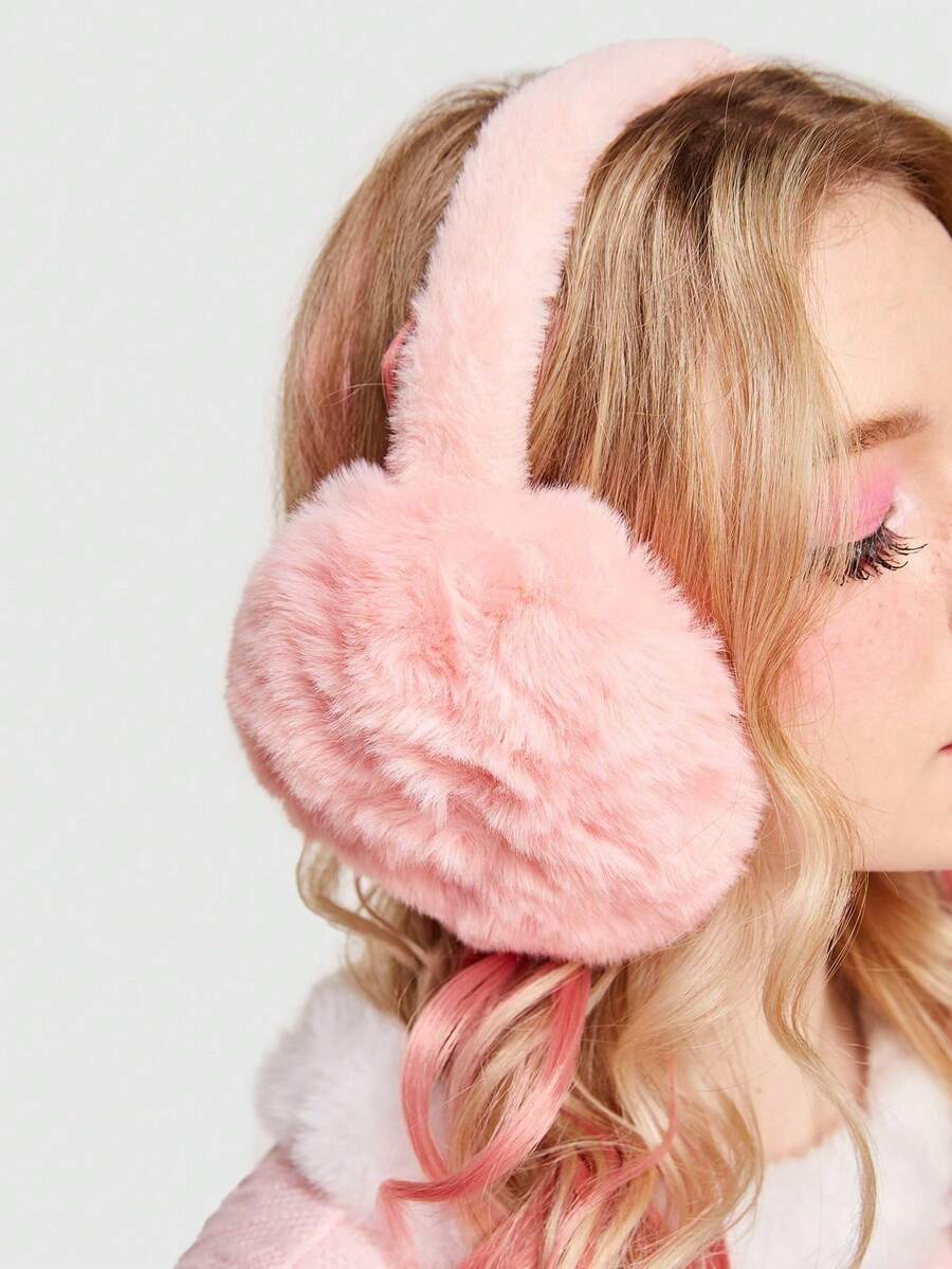 Kawaii 1pc Women Solid Fluffy Earmuffs