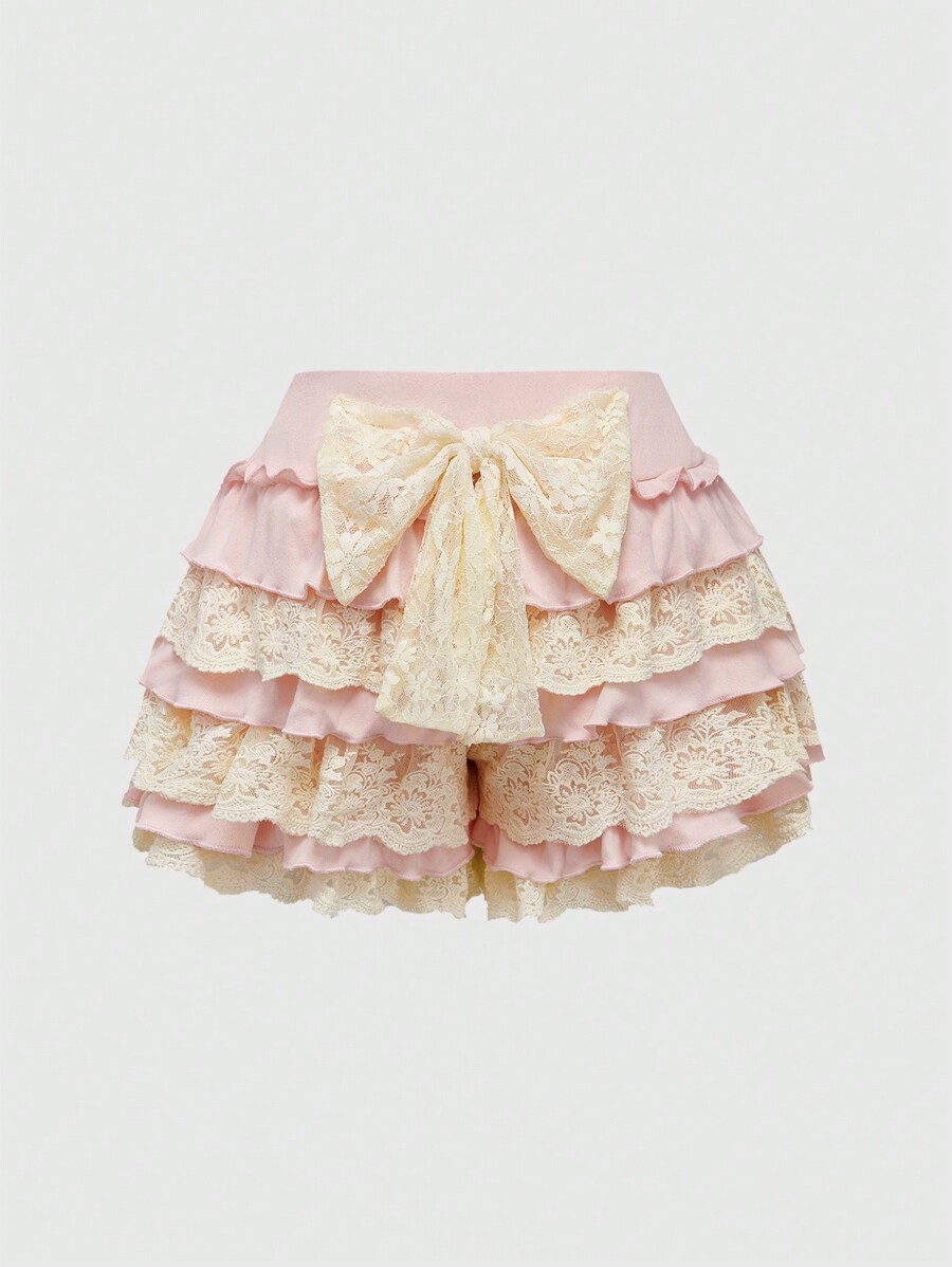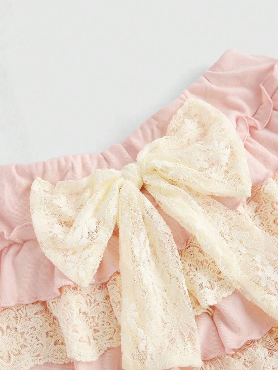 Kawaii Women Sexy Milkmaid Style Top With Bow Decor And Cake Skirt 2 Pieces Set