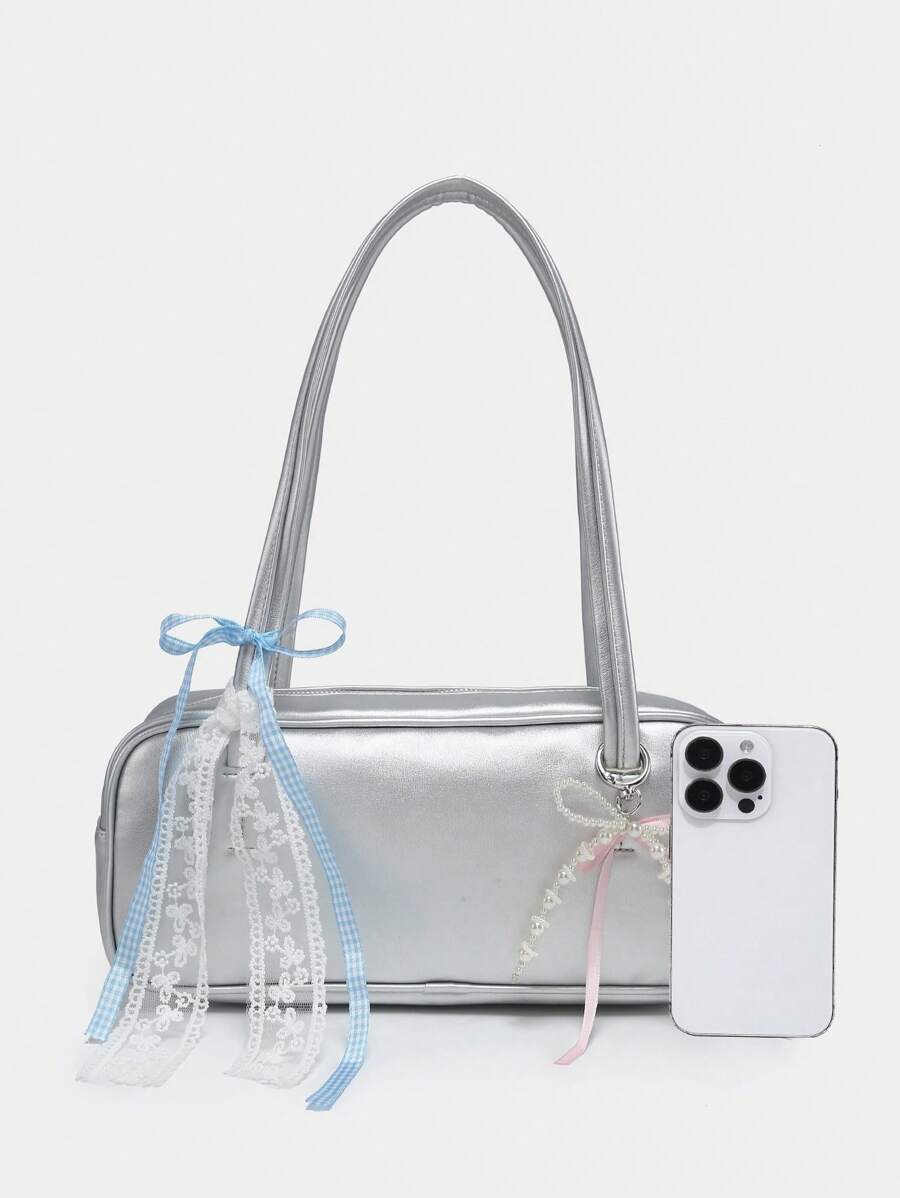 Kawaii Women Vintage Cute Bowknot Strap Heart Decor Shoulder Underarm Bag, Multi Pockets Boston Shoulder Bag