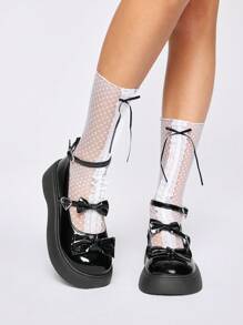 Kawaii Women's Black Mary Jane Shoes With Strap, Chain, Punk Rock Style Rivet Platform Y2K Gothic Wedge Pumps, Halloween