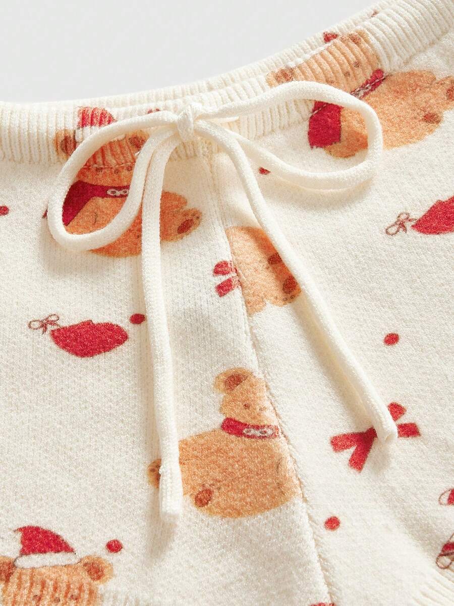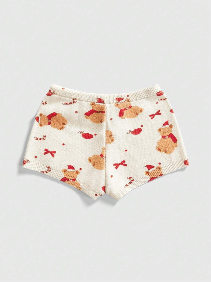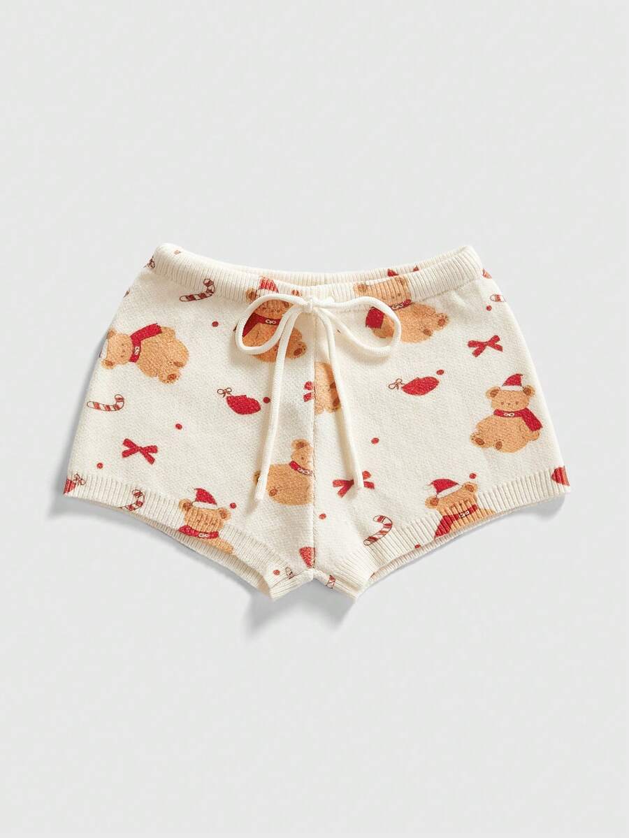 Kawaii Women's Cartoon Bear Pattern Drawstring Waist Casual Knit Shorts