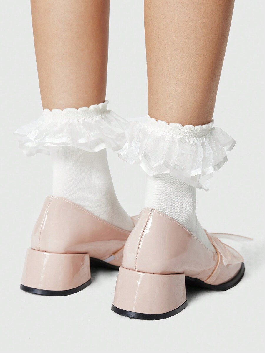 Kawaii Women's Closed Toe Chunky Heel High Heels, Mary Jane Style Bow Decor Leather Shoes