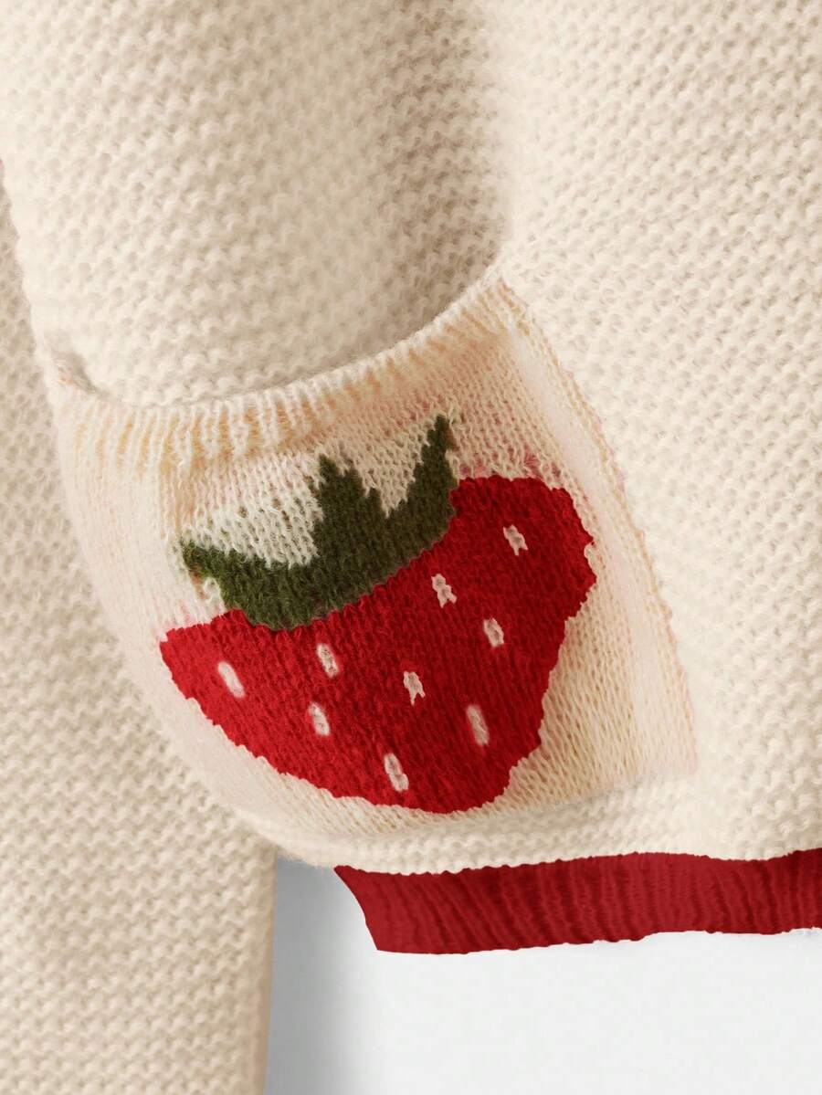 Kawaii Women's Fashion Casual Cute Crochet Strawberry Button Cardigan