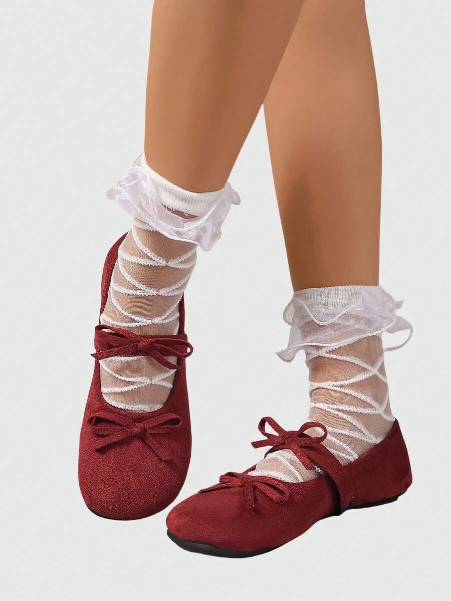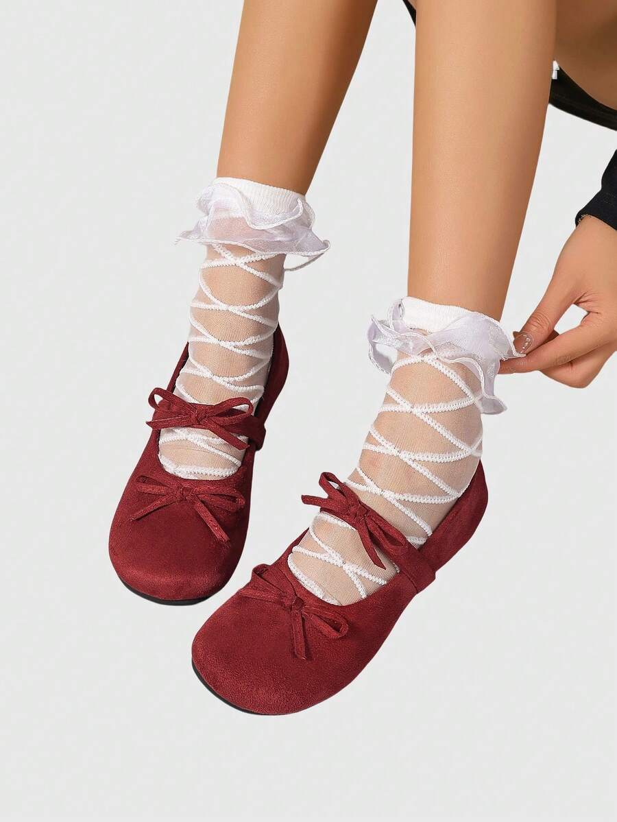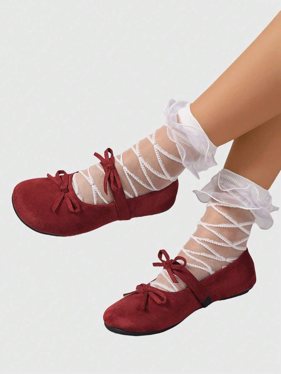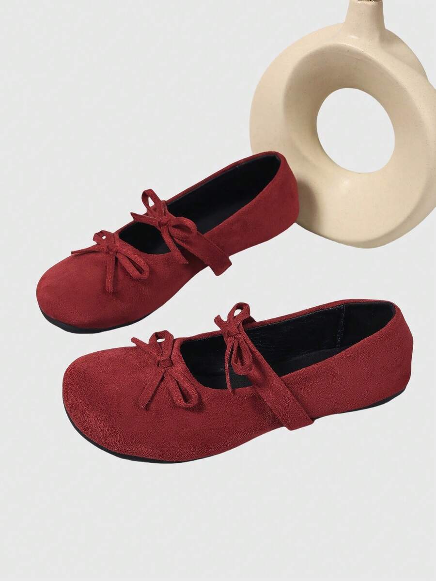 Kawaii Women's Fashionable Retro Red Mary Jane Flats With Bow Accent, Round Toe, Comfortable And Versatile Casual Shoes In Japanese Style