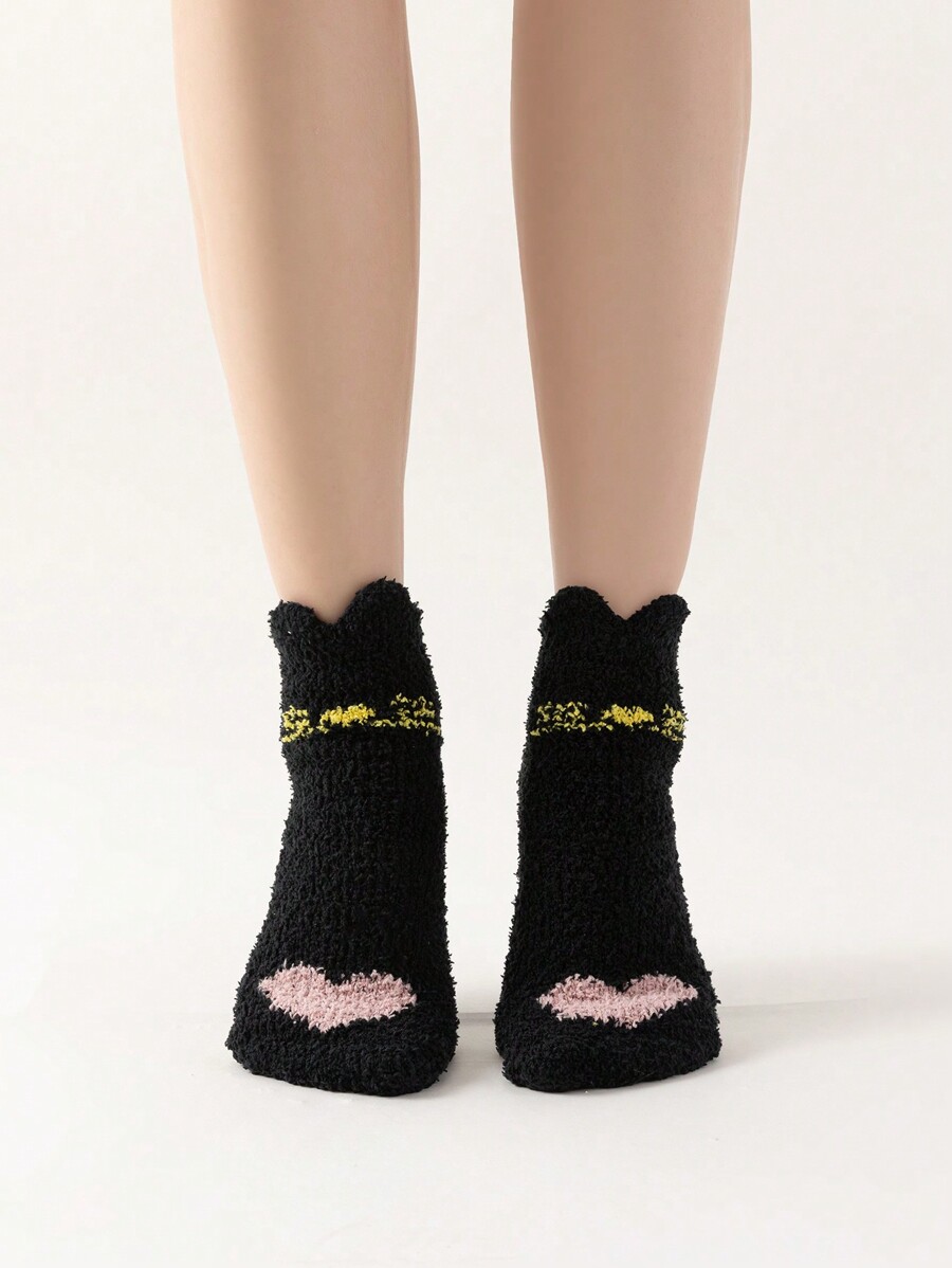 Kawaii Women's Heart Print Lace Detail Casual Mid-Calf Socks