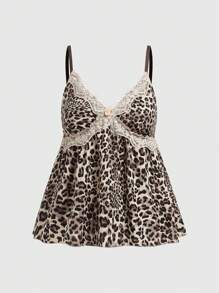 Kawaii Women's Leopard Printed Lace Trim Camisole Top, School