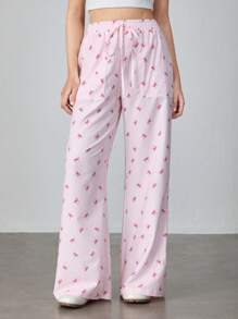 Kawaii Women's Loose Straight Leg Pants With Waist Tie And Side Pockets, Striped Knitted Ballet Style
