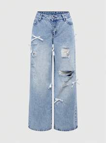 Women's Minimalist Fashion Denim Jeans, Suitable For Summer
