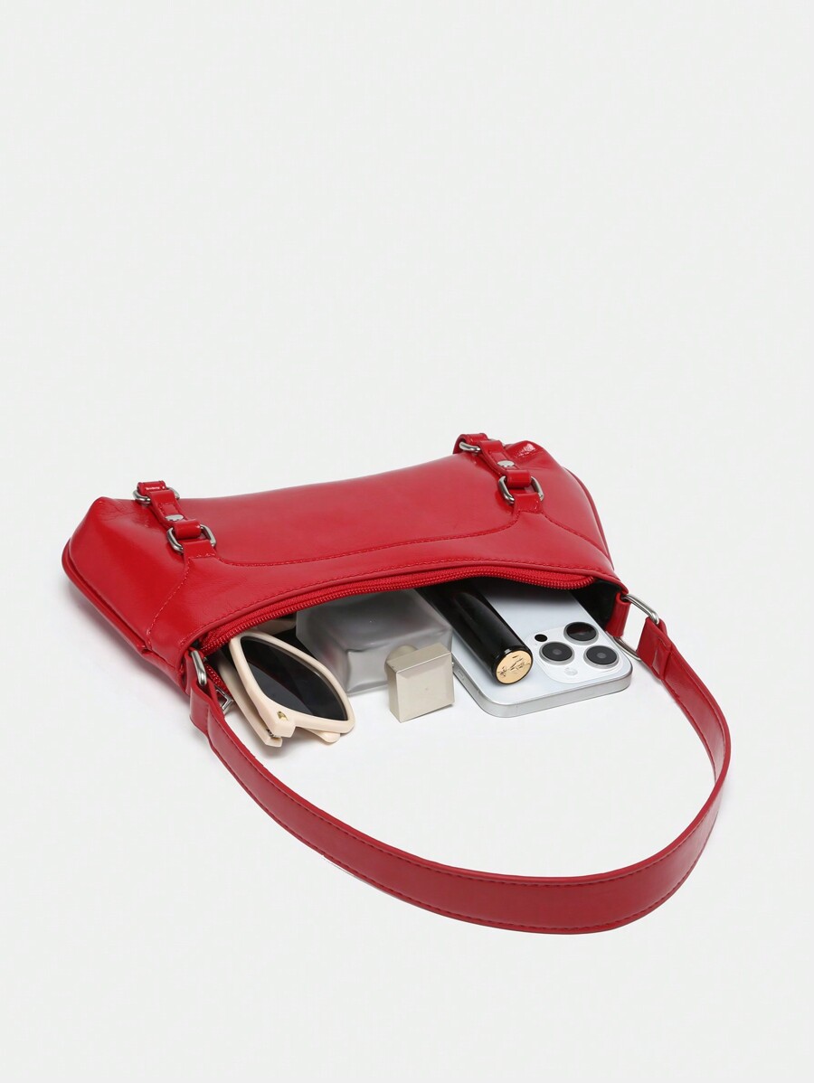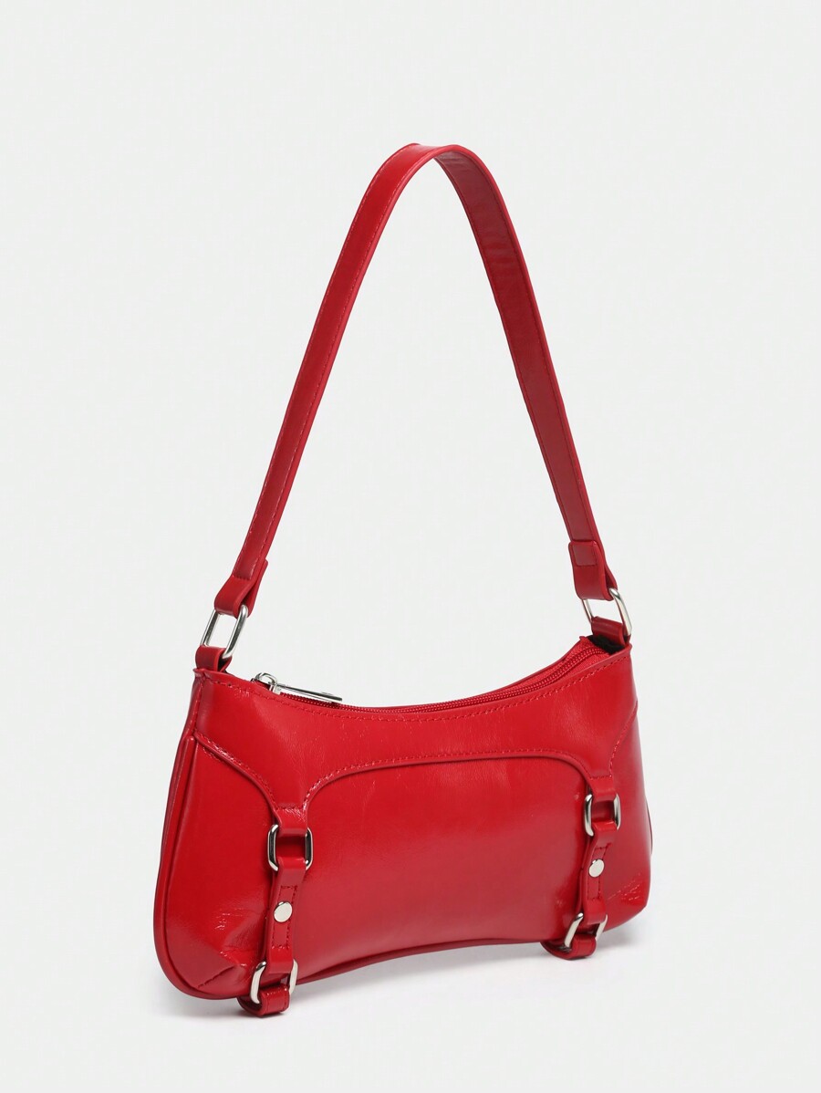 Kawaii Women's Retro Ballet Style Bow & Chain Decor Pearl Lace Accent Shoulder Underarm Baguette Bag