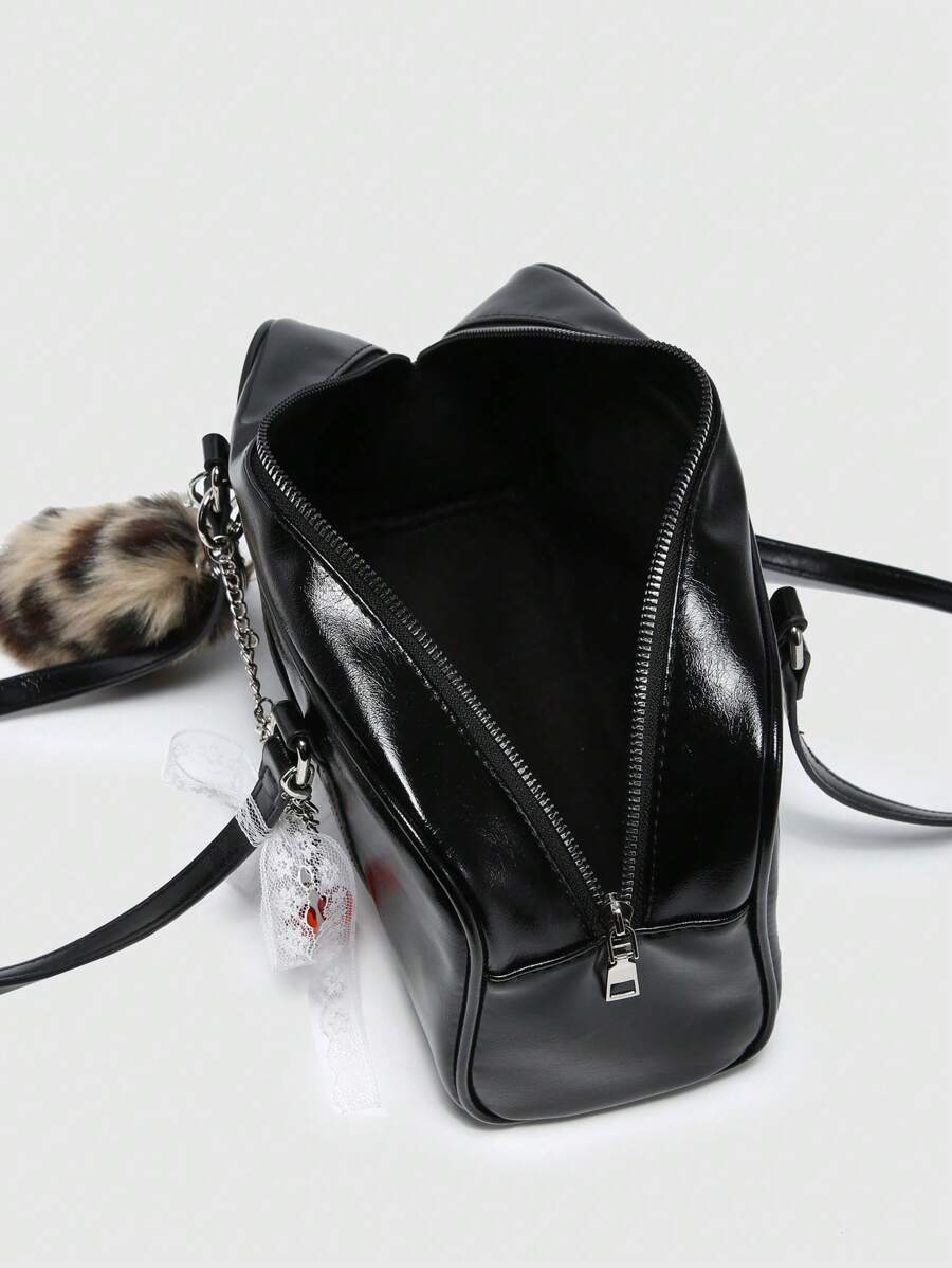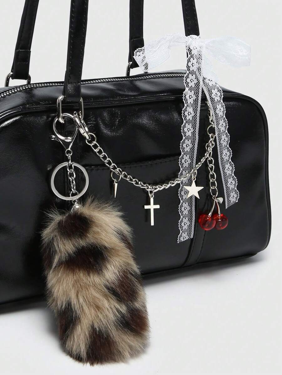 Kawaii Women's Retro Cute Plaid Bowknot Strap Cherry Heart Decor Shoulder Underarm Bag With Multiple Pockets Boston Shoulder Bag