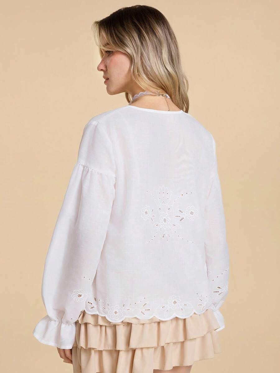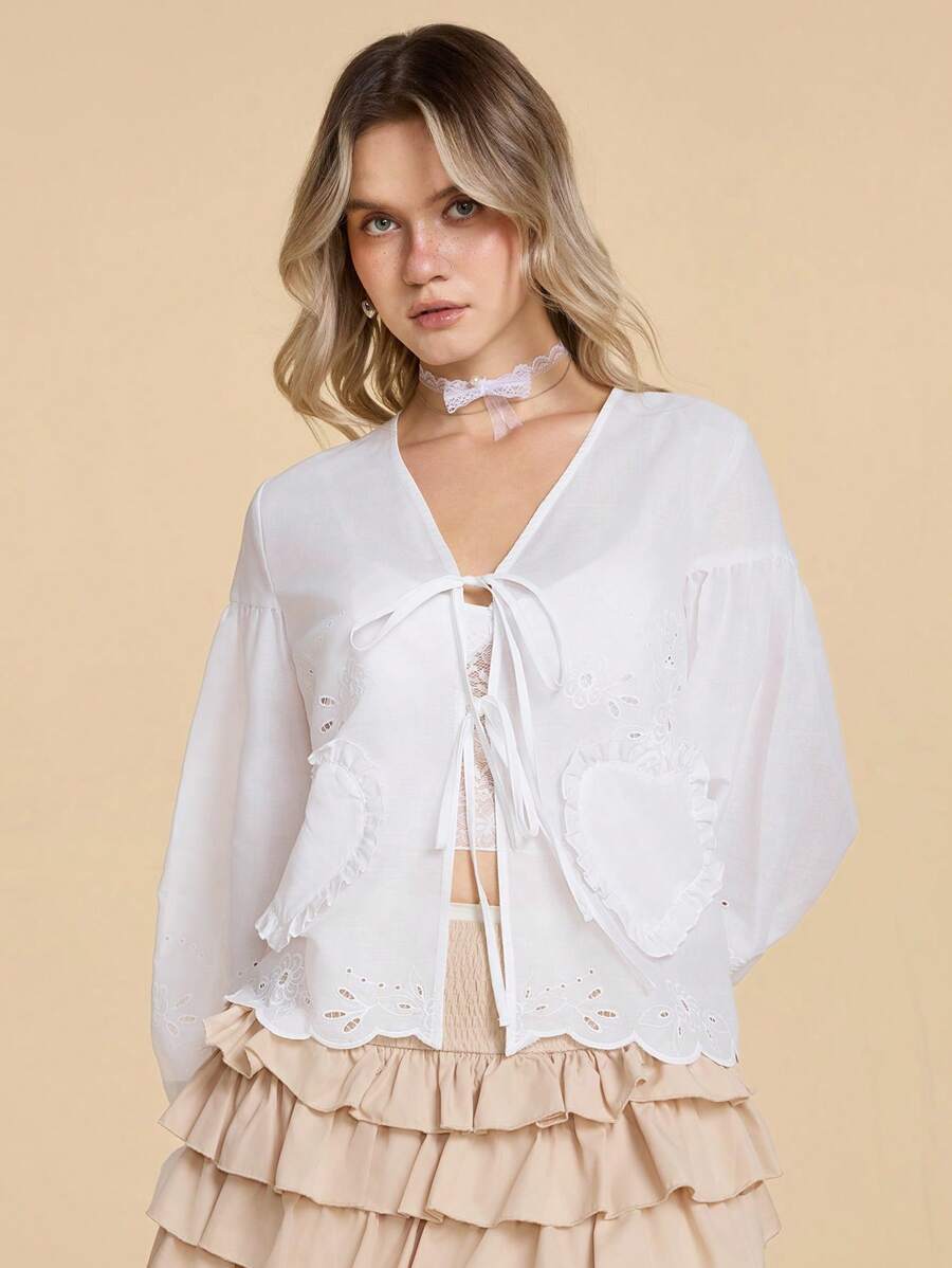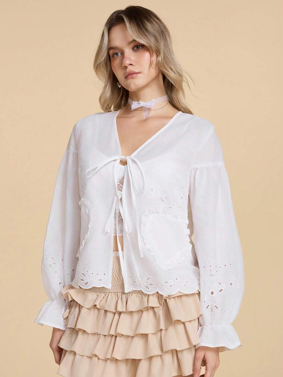 Kawaii Women's Romantic Cute Bowknot Collar Drop Shoulder Blouse With Lantern Sleeves For Valentine's Day
