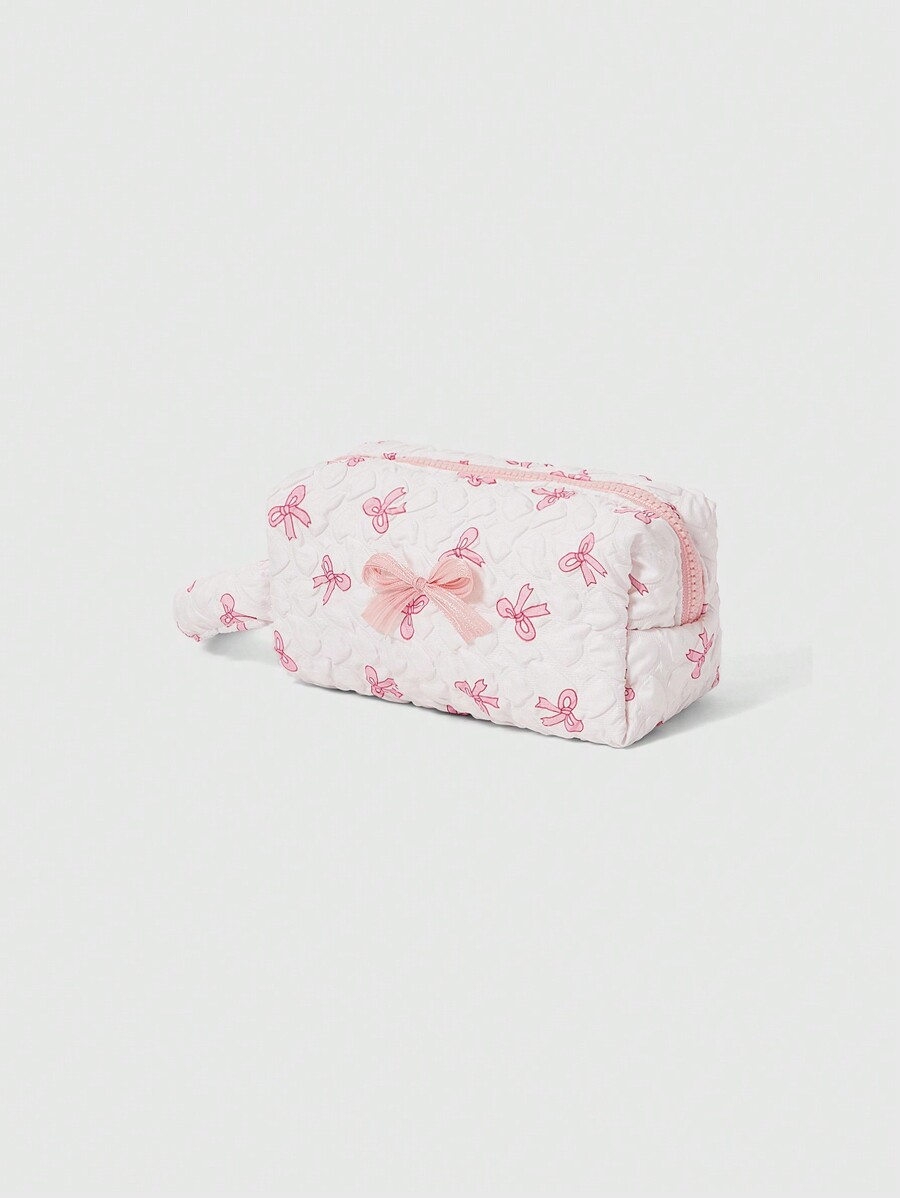 Kawaii Women's Simple Casual Bow Decor Zipper Clutch Bag