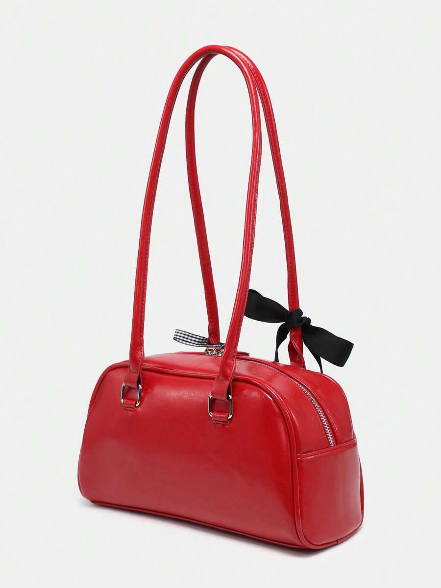 Kawaii Women's Vintage Checkered Bowknot Decoration Cherry Heart Shoulder Underarm Bag With Multiple Pockets, Boston Style