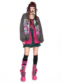 Kawaii Women's Y2K Horror Wing Bear Print Hoodie