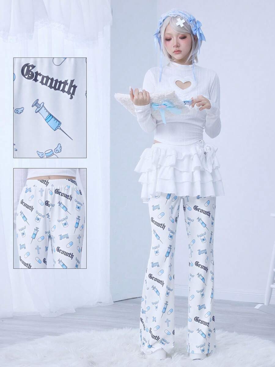 Kawaii Women's Yandere Subculture Medical Pill Cross Print Casual Pants