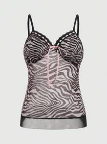 Kawaii Women's Zebra Pattern Lace Splicing Camisole Tank Top