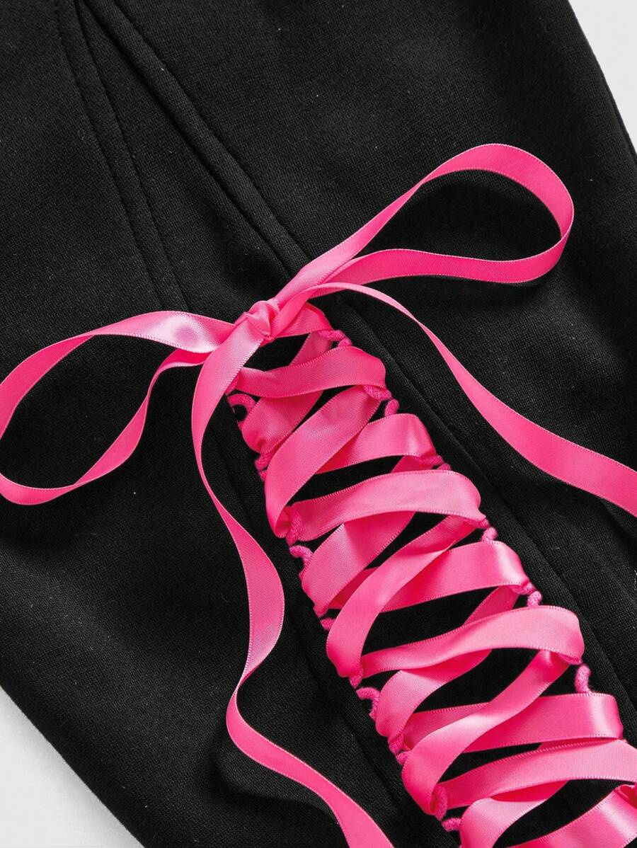Kawaii Y2K Streetwear Loose Camouflage Bowknot Strap Women Sweatpants
