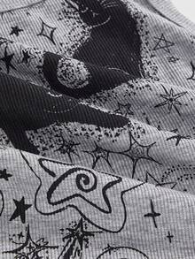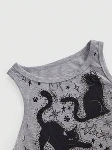 Kawaii Y2K Subculture Cute Hand-Drawn Cat & Star Print Women's Cropped Tight Camisole