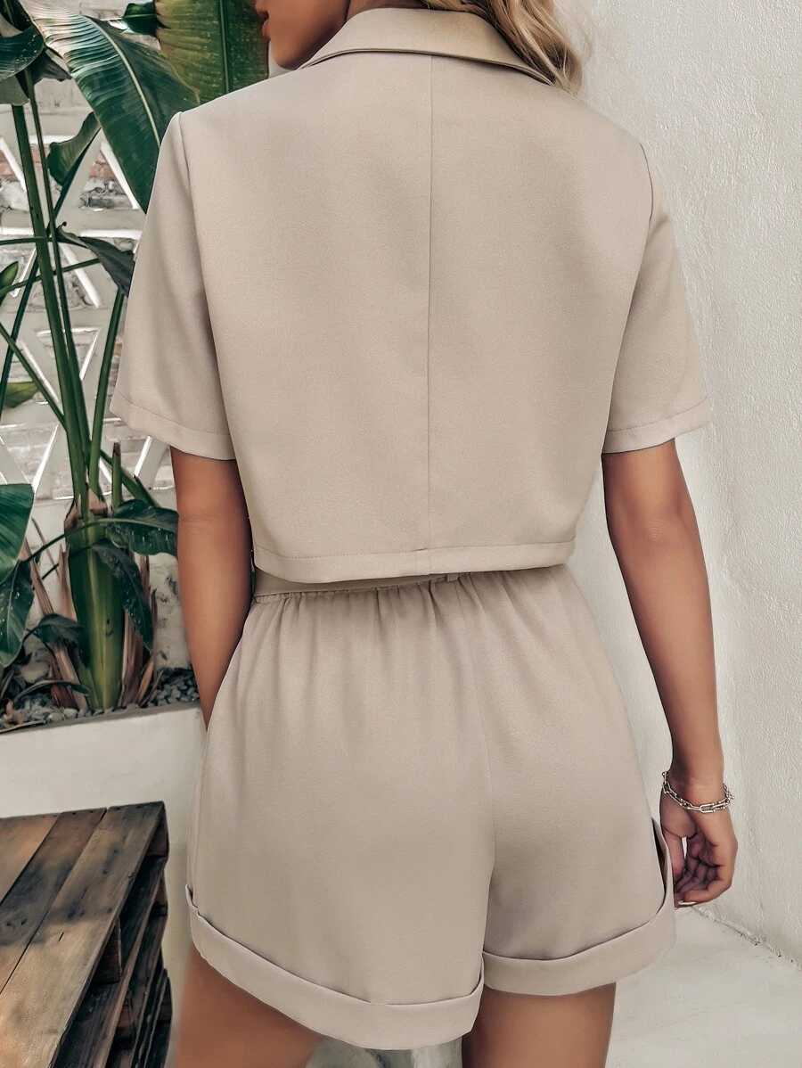 Lapel Neck Blazer & Paperbag Waist Belted Shorts