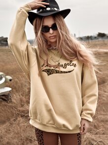 Leopard & Letter Graphic Boyfriend Sweatshirt