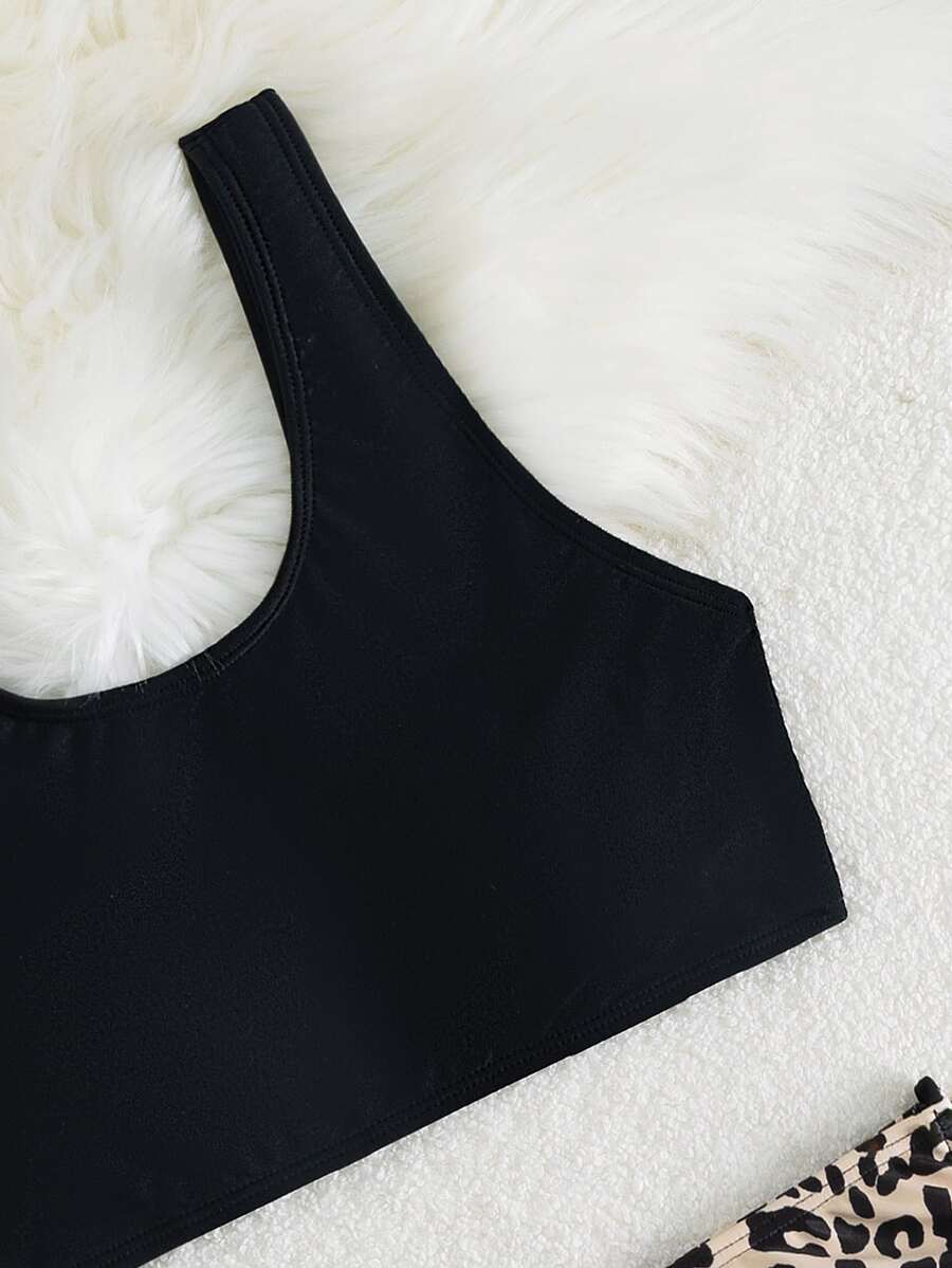 Leopard Drawstring Side High Waisted Summer Beach Bikini Set
