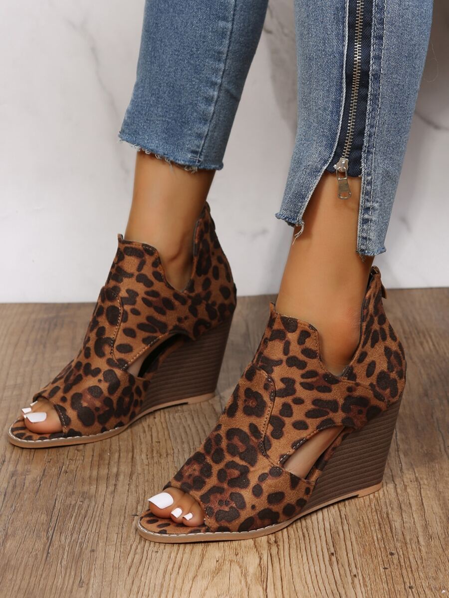 Leopard Print Cut Out Suedette Wedge Court Shoes