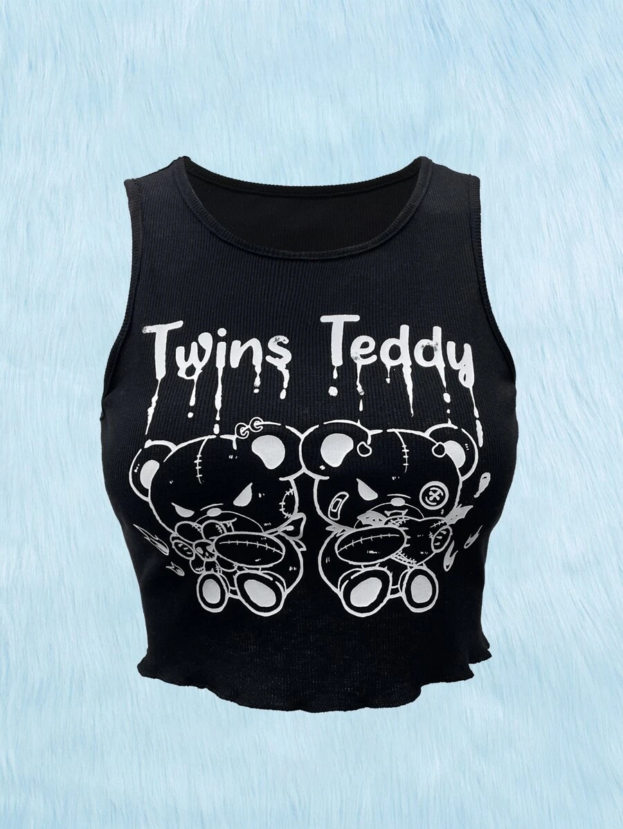Kawaii Letter Bear Graphic Lettuce Trim Tank Top