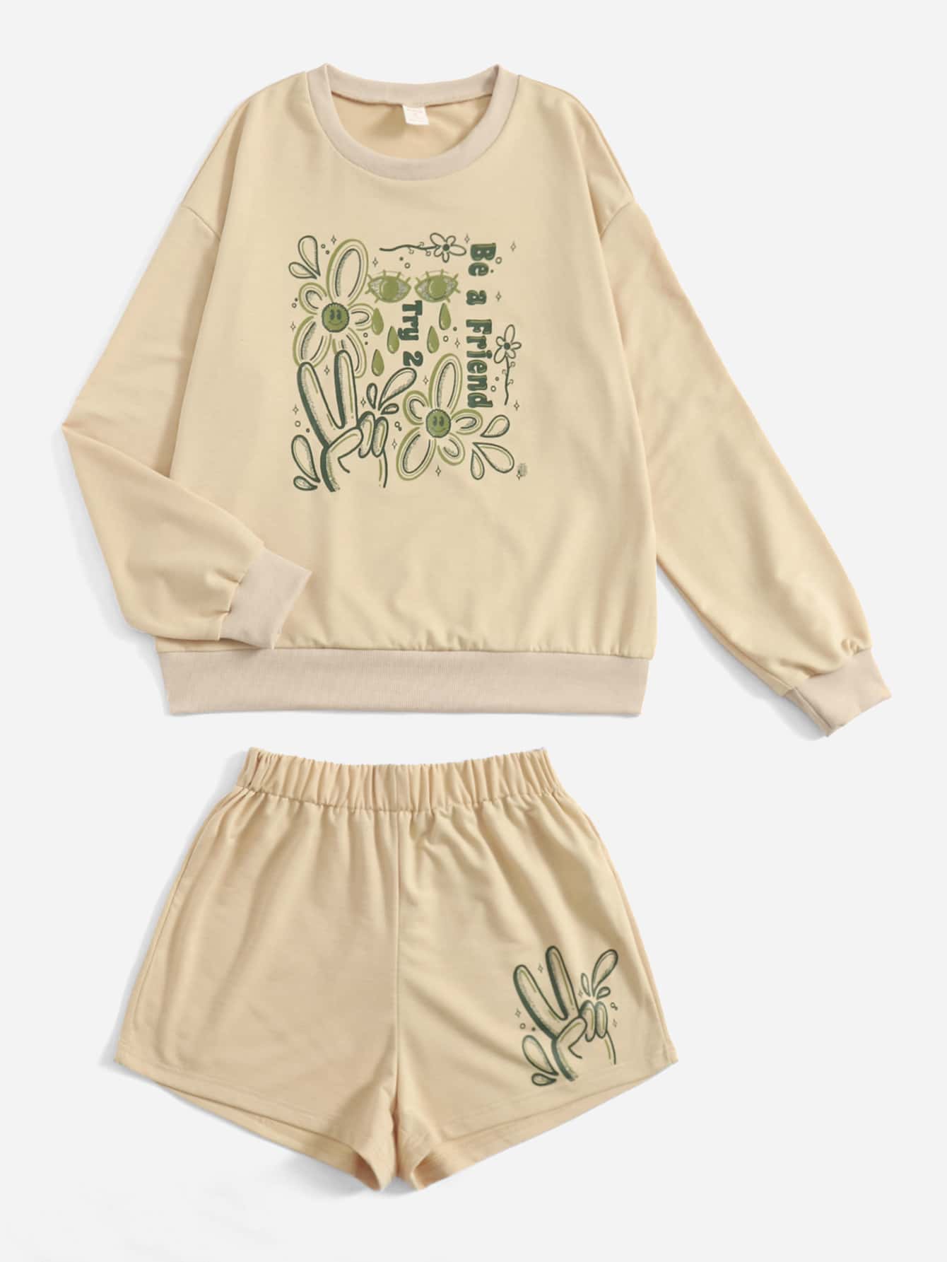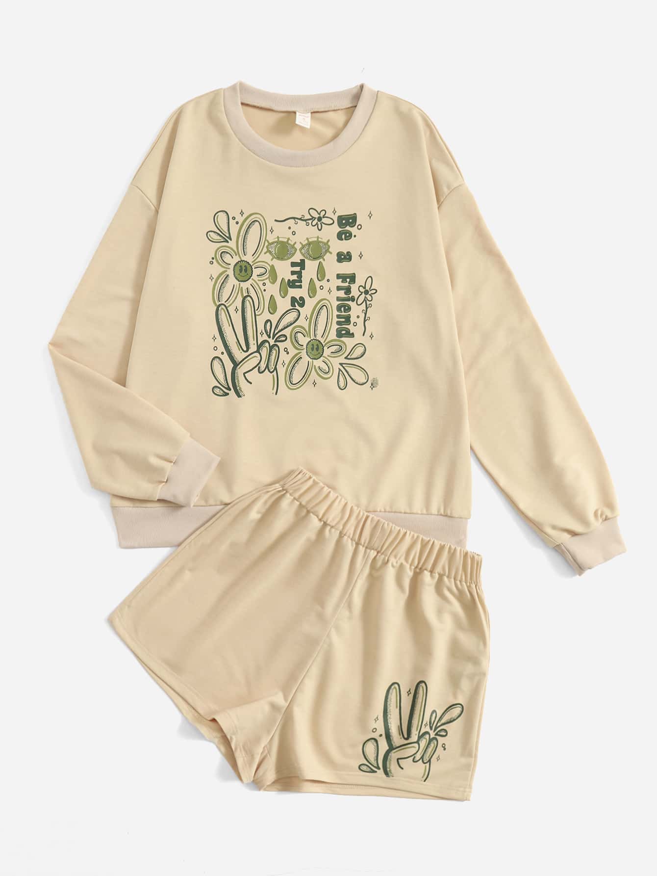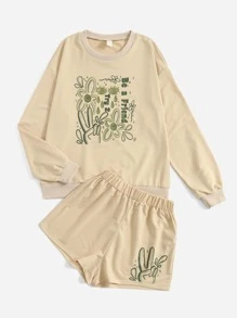 Letter Cartoon Graphic Sweatshirt & Track Shorts