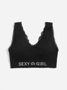 Letter Contrast Lace Longline Bralette