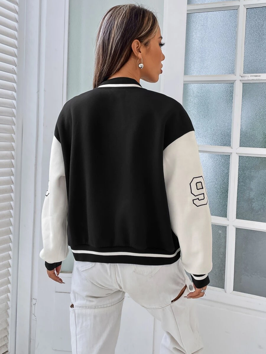 Letter Graphic Colorblock Drop Shoulder Varsity Jacket